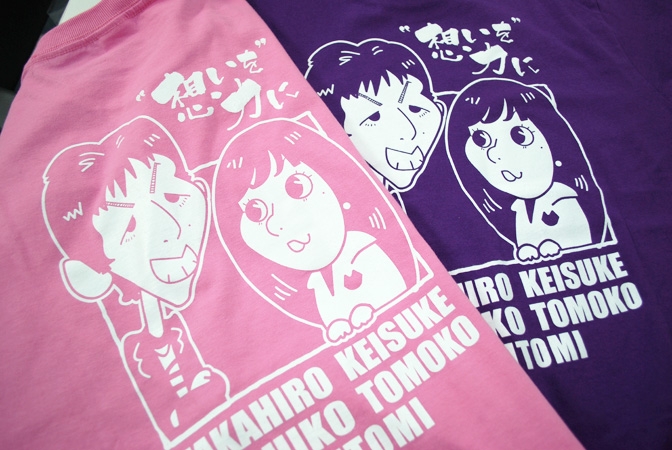 紫、ピンク、緑の3色のTシャツで作っていただきました♪