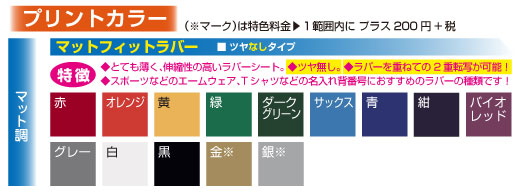 サッカー、バスケット、バレーなどのゲームウェア、Tシャツなどの名入れ・背番号に! ※艶ありタイプ・発泡タイプなどもございます。詳しくはお問い合わせ下さい。 ![]()