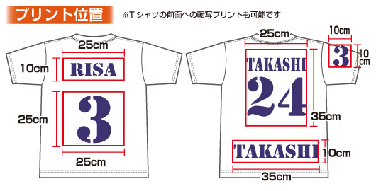 ![]() ※プリントしたい書体を上記からお選び下さい。 注文・データ作成に関するご注意 ※お客様によるTシャツやその他ボディの持ち込みのプリントは対応しておりませんのでご了承下さい。 ※版権及び著作権等に関する一切の責任はお客様に帰属しますのでご注意ください。 ※郵送の場合のUSBメモリやCD-ROMは、商品に同封して返却致しますが、配達時の破損等については責任を負いかねますのでデータのバックアップは必ず行ってください。 ※ご注文時には全員分の背番号と名前リストを半角英数字でお送り下さい。 製品に関して ※プリント部分に直接のアイロン掛けはおやめ下さい。 |